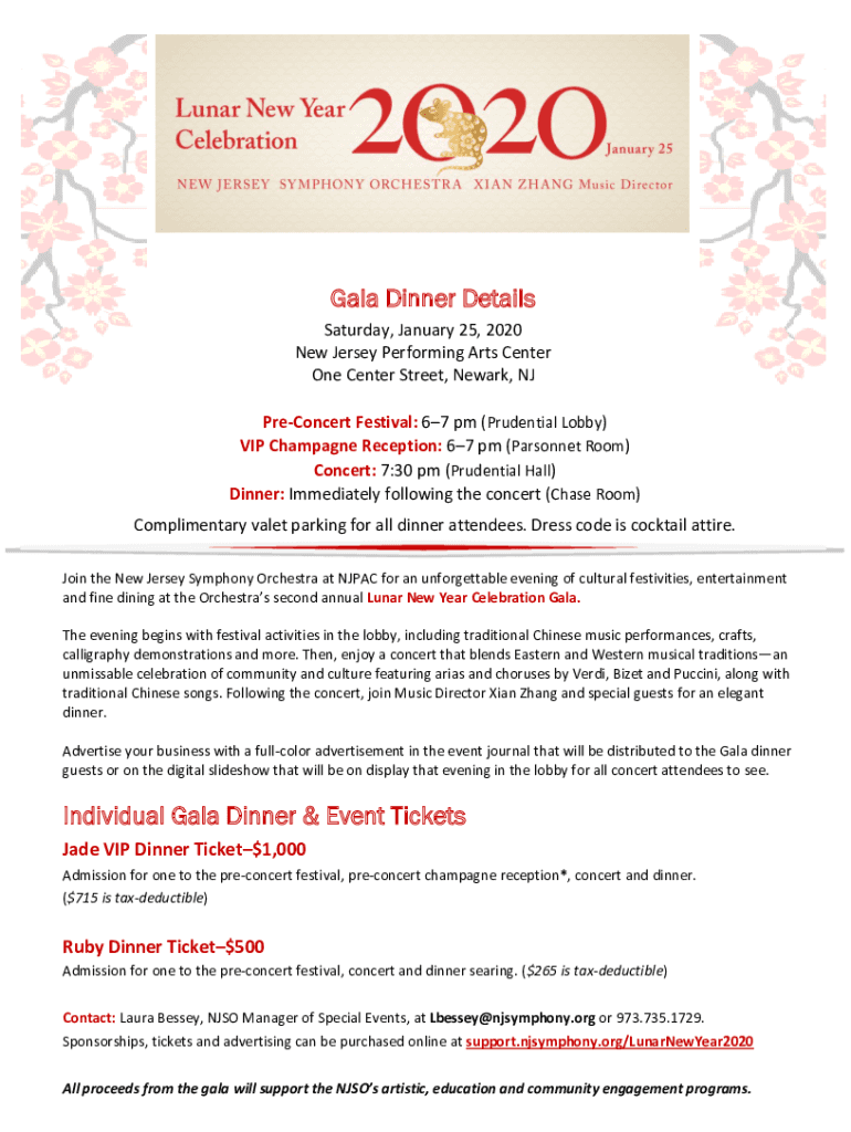Gala Dinner Details Saturday, January 25, 2020, New Jersey Performing Arts Center One Center Street, Newark, NJ Reconvert Festival: 67 pm (Prudential Lobby) VIP Champagne Reception: 67 pm (Par sonnet