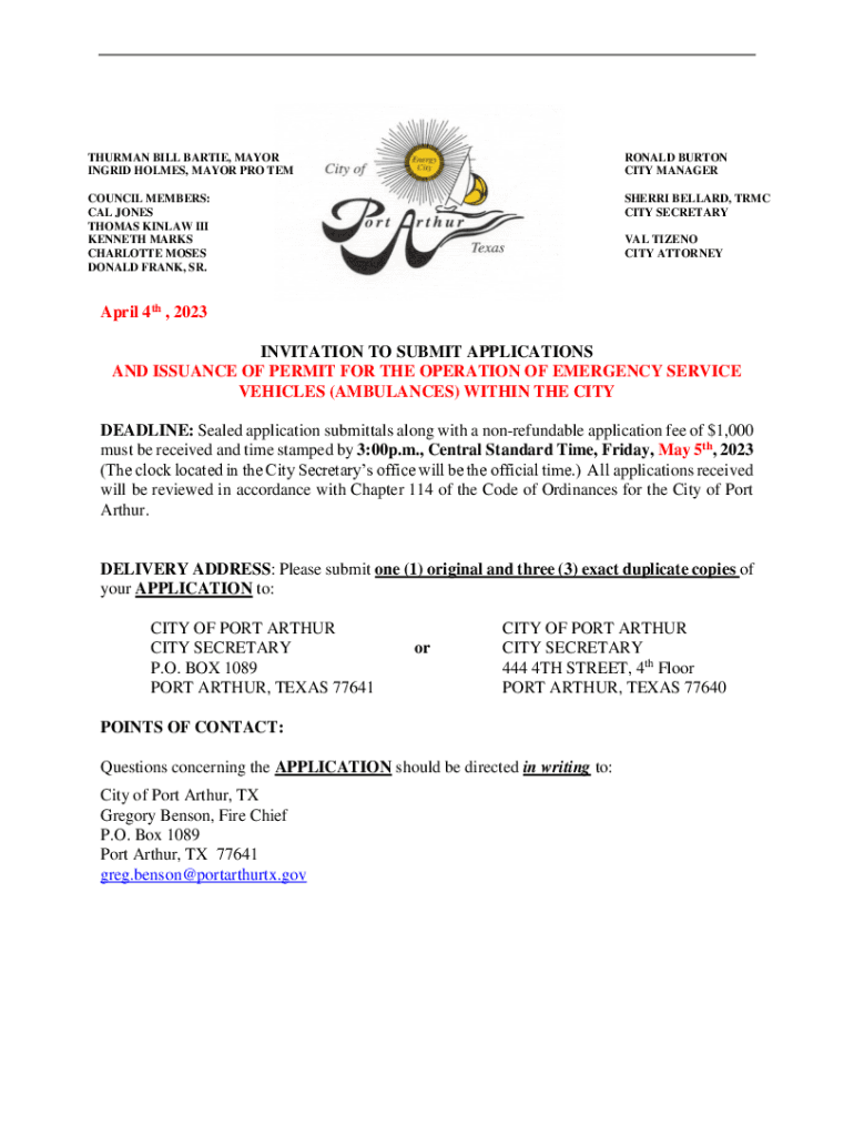 Await confirmation or further instructions from the City of Port Arthur regarding your submission