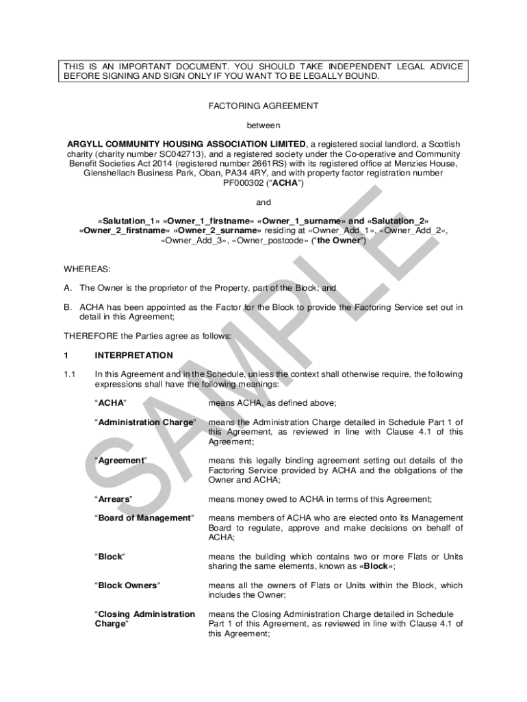 THIS IS AN IMPORTANT DOCUMENT. YOU SHOULD TAKE INDEPENDENT LEGAL ADVICE BEFORE SIGNING AND SIGN ONLY IF YOU WANT TO BE LEGALLY BOUND.FACTORING AGREEMENT between ARGYLE COMMUNITY HOUSING ASSOCIATION