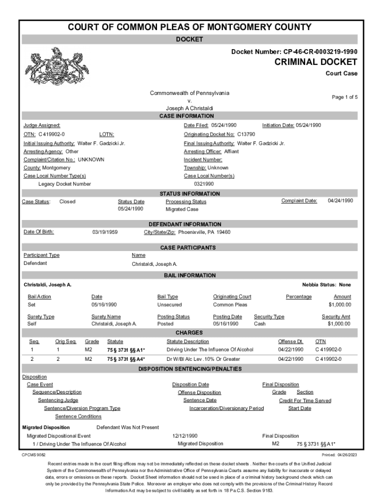 DOCKET Number: CP46CR00032191990CRIMINAL DOCKET