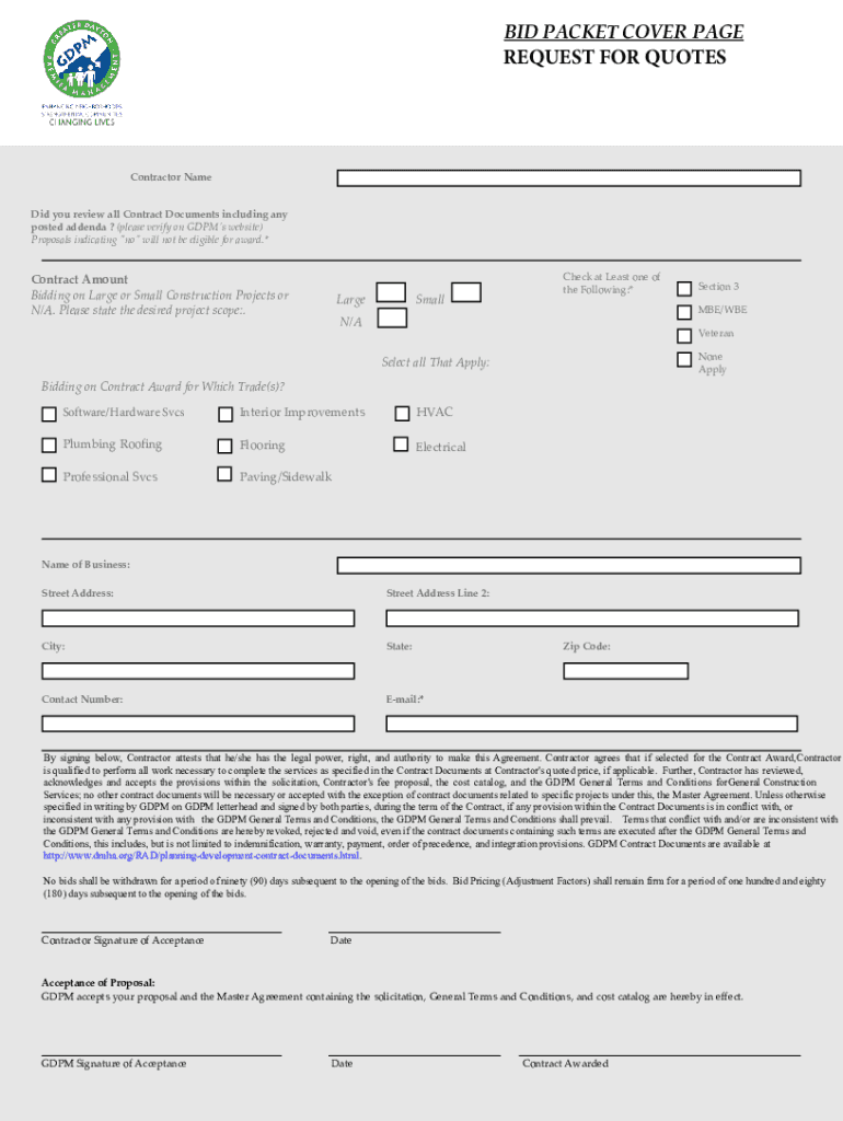BID PACKET COVER PAGEREQUEST FOR QUOTESContractor Name