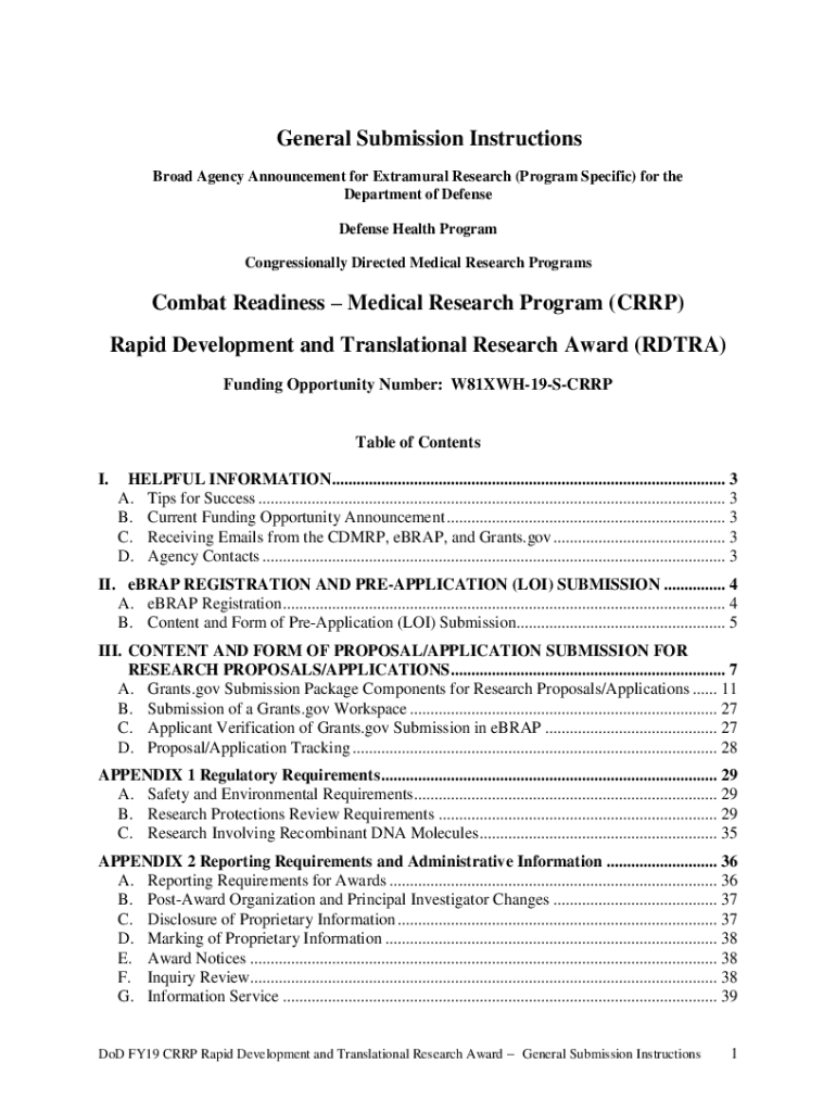 General Submission Instructions Broad Agency Announcement for Extramural Research (Program Specific) for the Department of Defense Health Program Congressionally Directed Medical Research ProgramsCombat