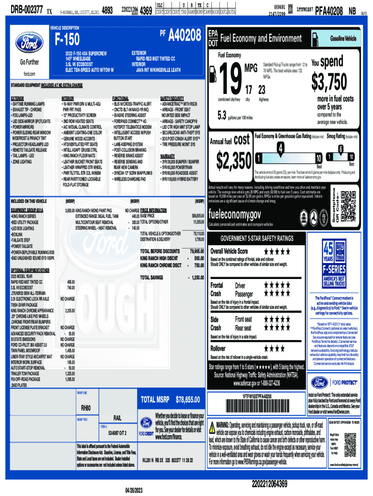 Edit your new ford f-150 for form online