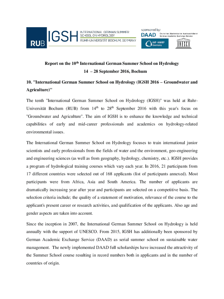 Get the free Report on the 10th International German Summer School on ...