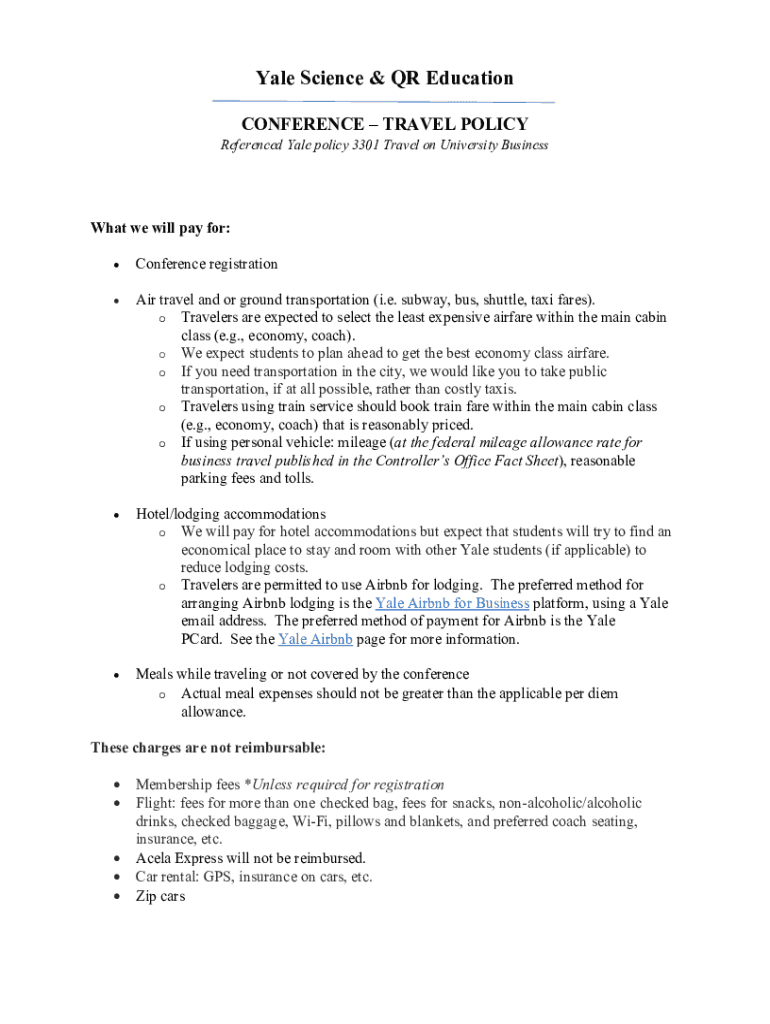 CONFERENCE TRAVEL POLICYReferenced Yale policy 3301 Travel on University Businessman we will pay for: