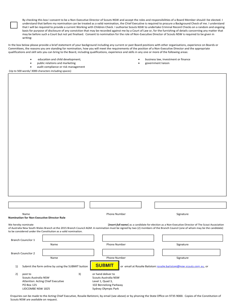 Nominations for (Honorary) Consecutive Directors: The Scout Association of Australia New South Wales Branch Preamble In accordance with the constitution (Constitution) of The Scout Association of