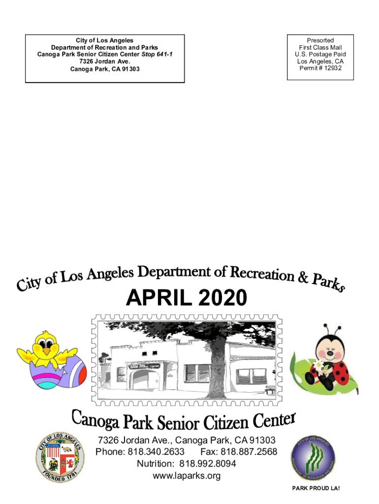 City of Los Angeles Department of Recreation and Parks Canola Park Senior Citizen Center Stop 6411 7326 Jordan Ave. Canola Park, CA 91303Presorted First Class Mail U.S. Postage Paid Los Angeles, CA