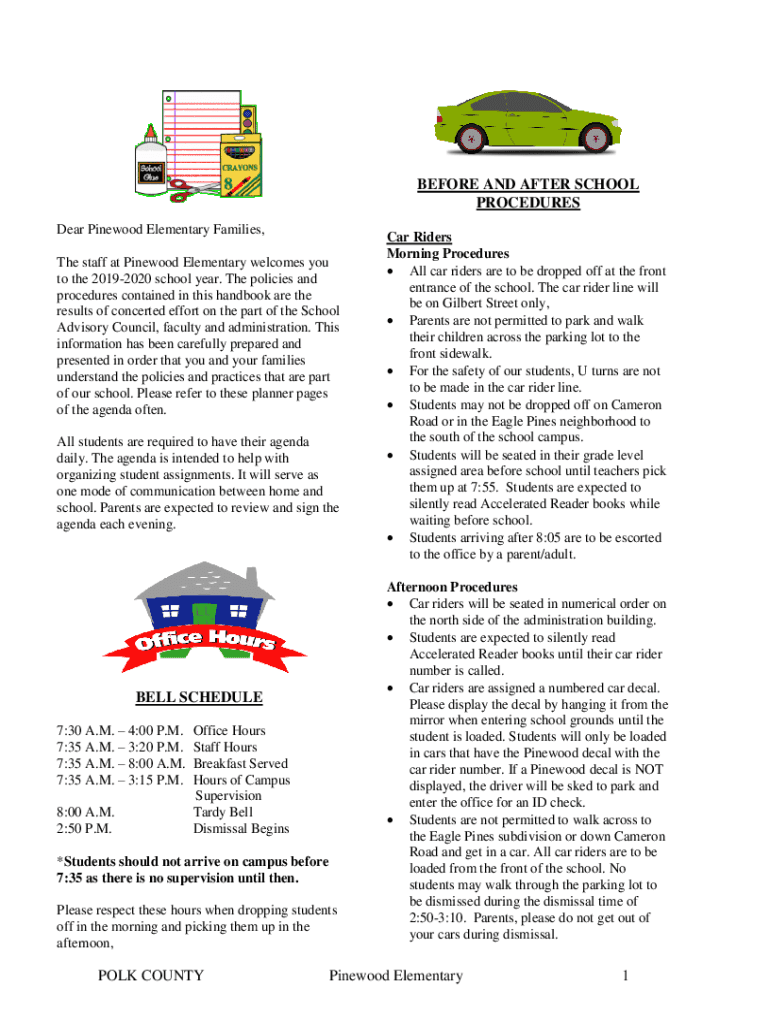 Get the free POLK COUNTY Pinewood Elementary 1 BELL SCHEDULE ...