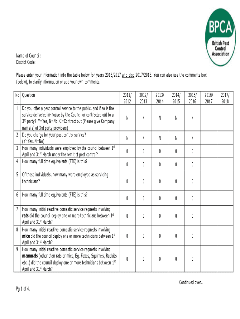 Name of Council: District Code: Please enter your information into the table below for years 2016/2017 and also 2017/2018. You can also use the comments box (below), to clarify information or add