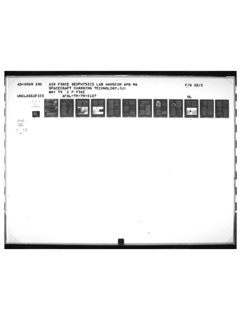 ADA069 196 CLASSIC led AIR FORCE GEOPHYSICS LAS HANSOM AFB MA SPACECRAFT CHARGING TECHNO4.LOGY. (U) MAY 79 C P PIKE AF6L TR 79 0107F/S 22/2 pit. END nycDX110 ___. I8 3i53.5 L×11111.2522I 2O _ _ _NATIONALIZES