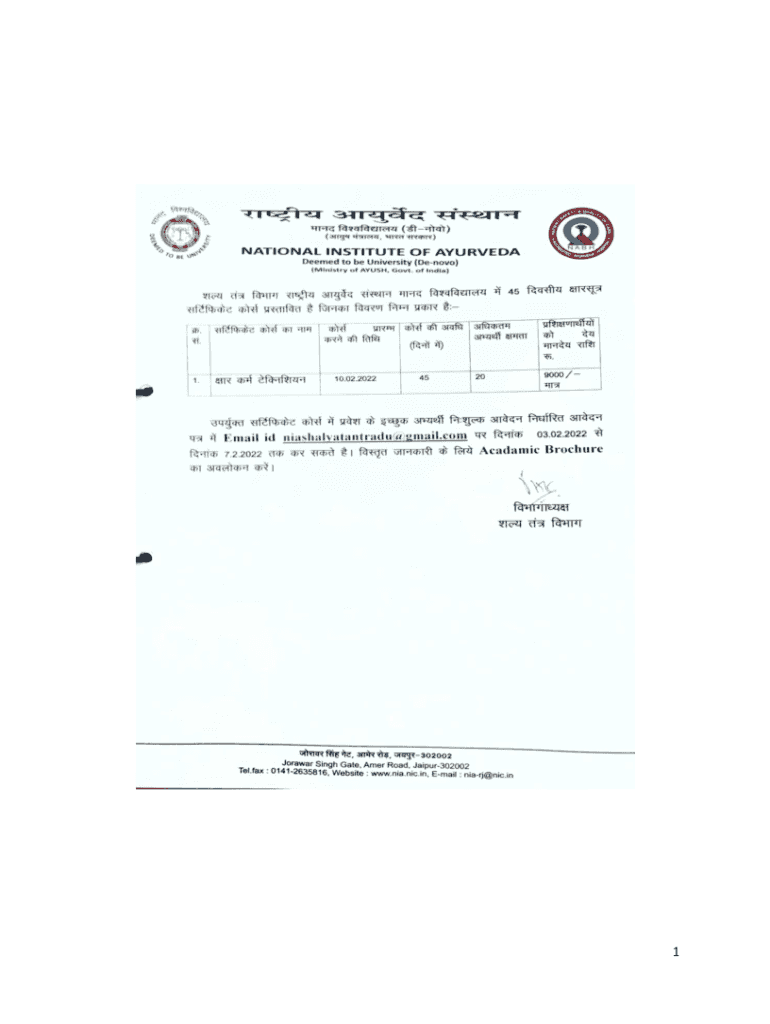 1NATIONAL INSTITUTE OF AYURVEDA Deemed To Be University (De Nova) Forward Singh Gate, Amer Road, Jaipur302002 An Autonomous Institute under the Ministry of AYUSH, Govt. of India. Academic Brochure