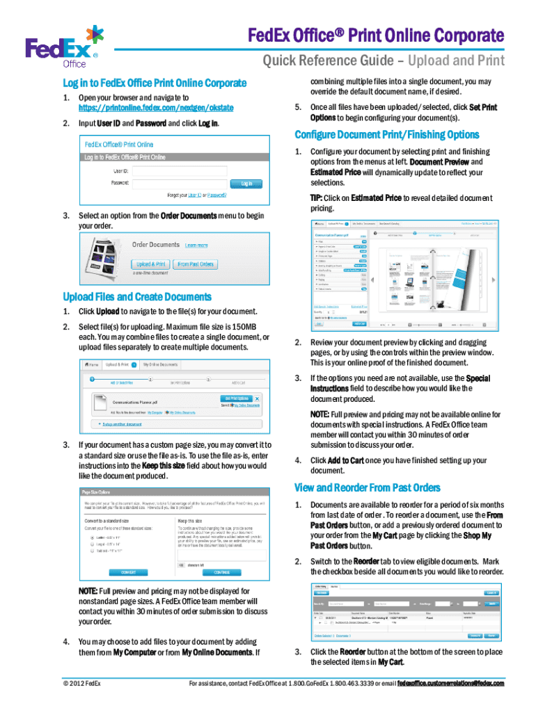 FedEx Office Print Online Corporate Quick Reference Guide Upload and Print Log in to FedEx Office Print Online Corporate 1. Open your browser and navigate to https://printonline.fedex.com/nextgen/okstate2.