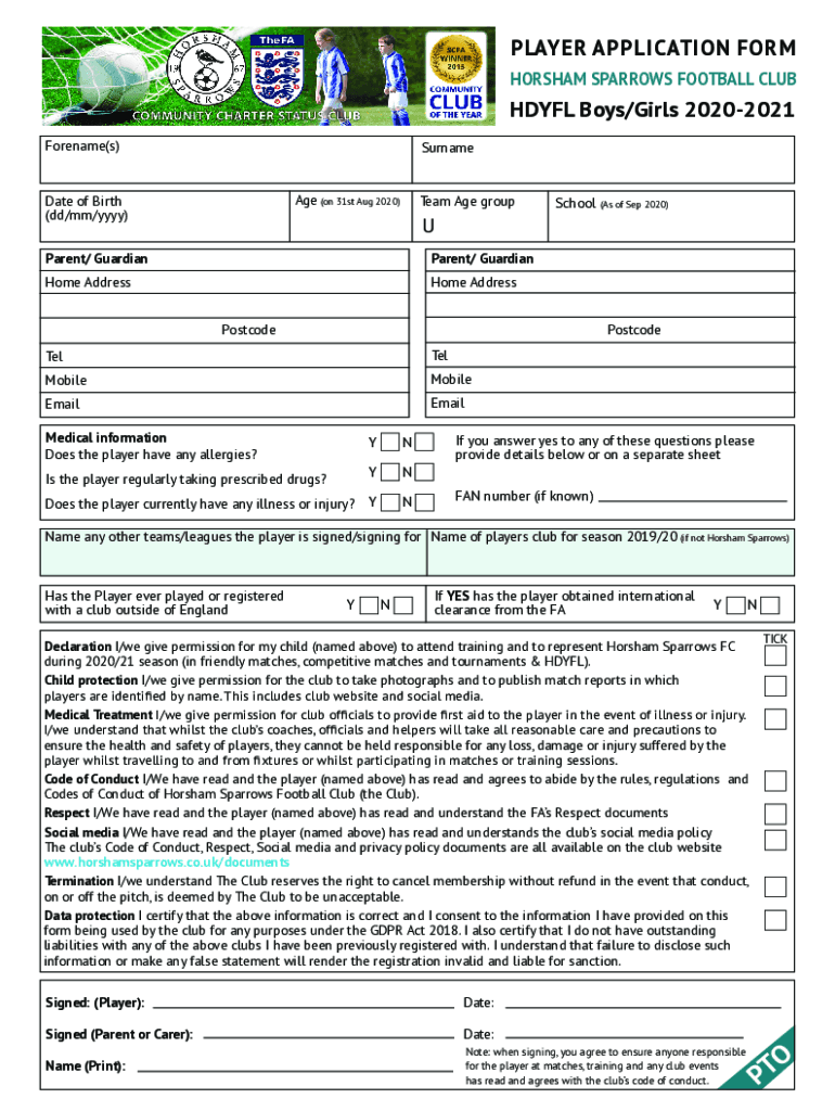 Get, Create, Make and Sign player application form hdyfl