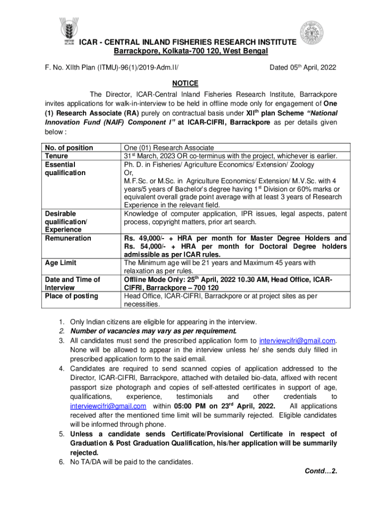 CAR CENTRAL INLAND FISHERIES RESEARCH INSTITUTE