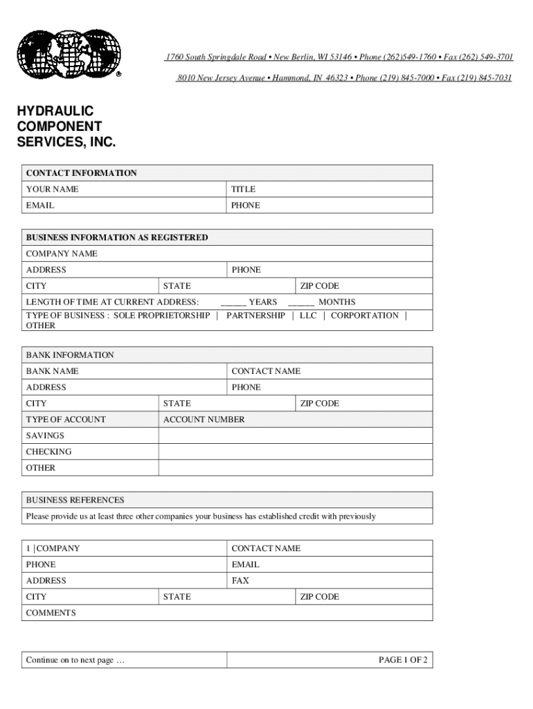 1760 South Springdale Road New Berlin, WI 53146 Phone (262)5491760 Fax (262) 5493701 8010 New Jersey Avenue Hammond, IN 46323 Phone (219) 8457000 Fax (219) 8457031HYDRAULIC COMPONENT SERVICES, INC.