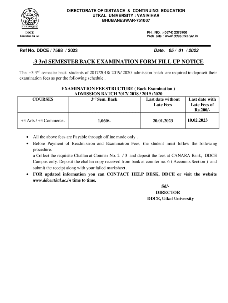 Get the free +3 3rd SEMESTERBACK EXAMINATION FORM FILL UP ... - ddceutkal ac