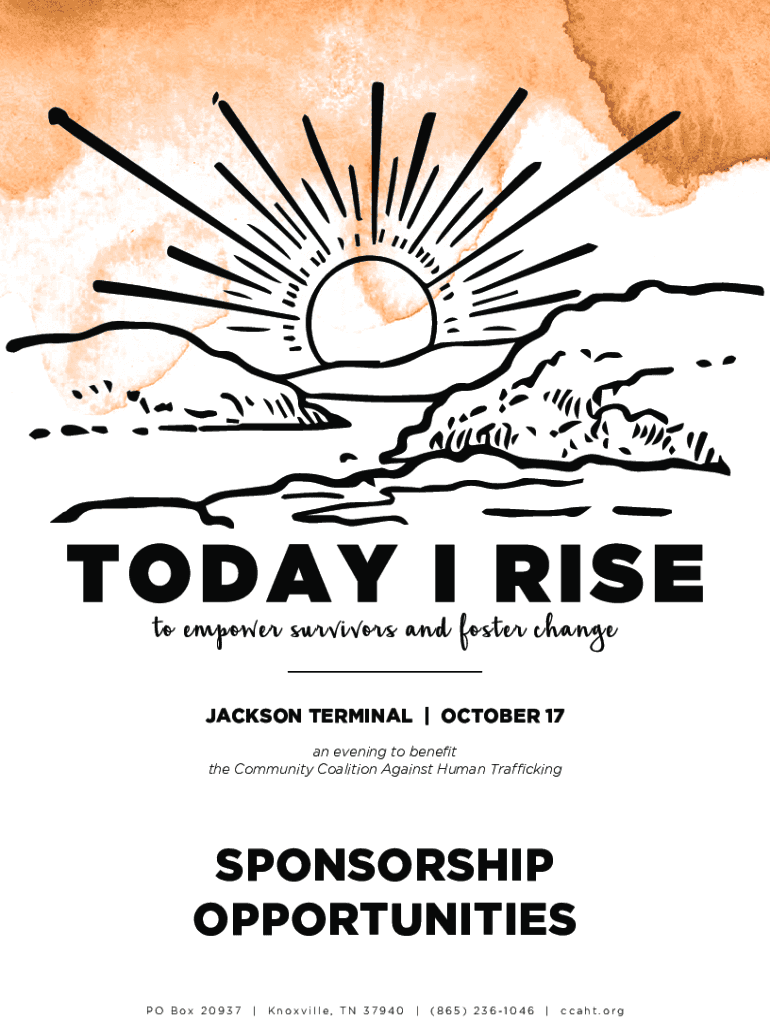To empower survivors and foster change JACKSON TERMINAL | OCTOBER 17 an evening to benefit the Community Coalition Against Human TraffickingSPONSORSHIP OPPORTUNITIES PO Box 20937|Knoxville, TN 37940|(865)