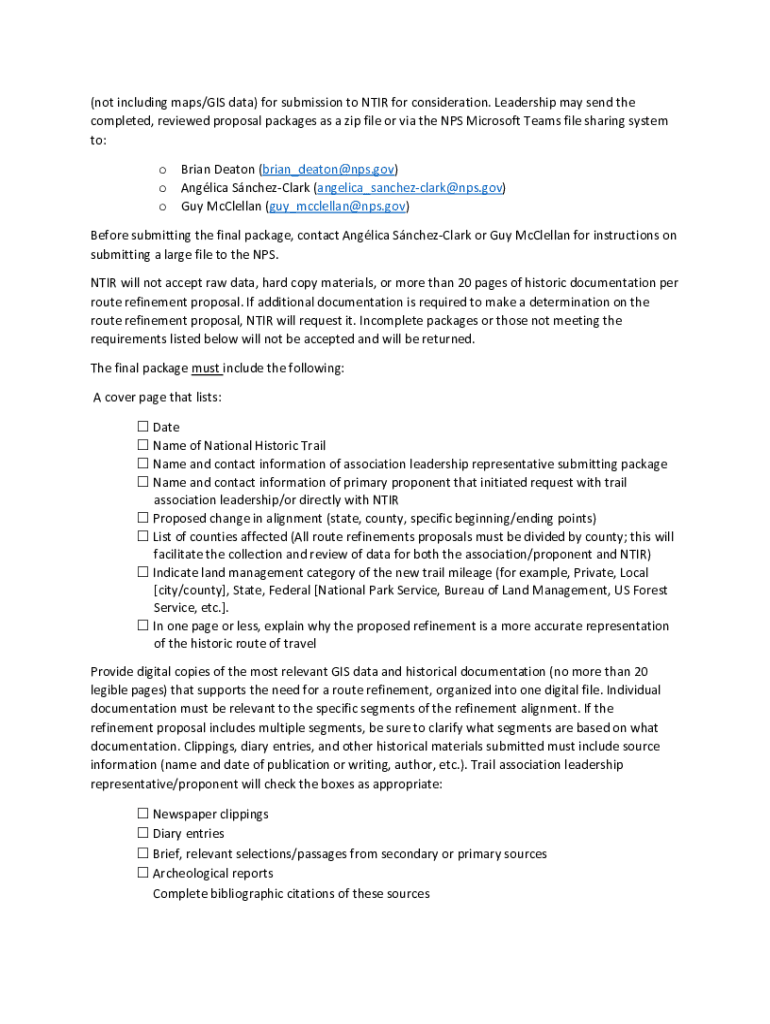 Get the free National TrailsNational Park Service Route Refinement Submission Package Requirements