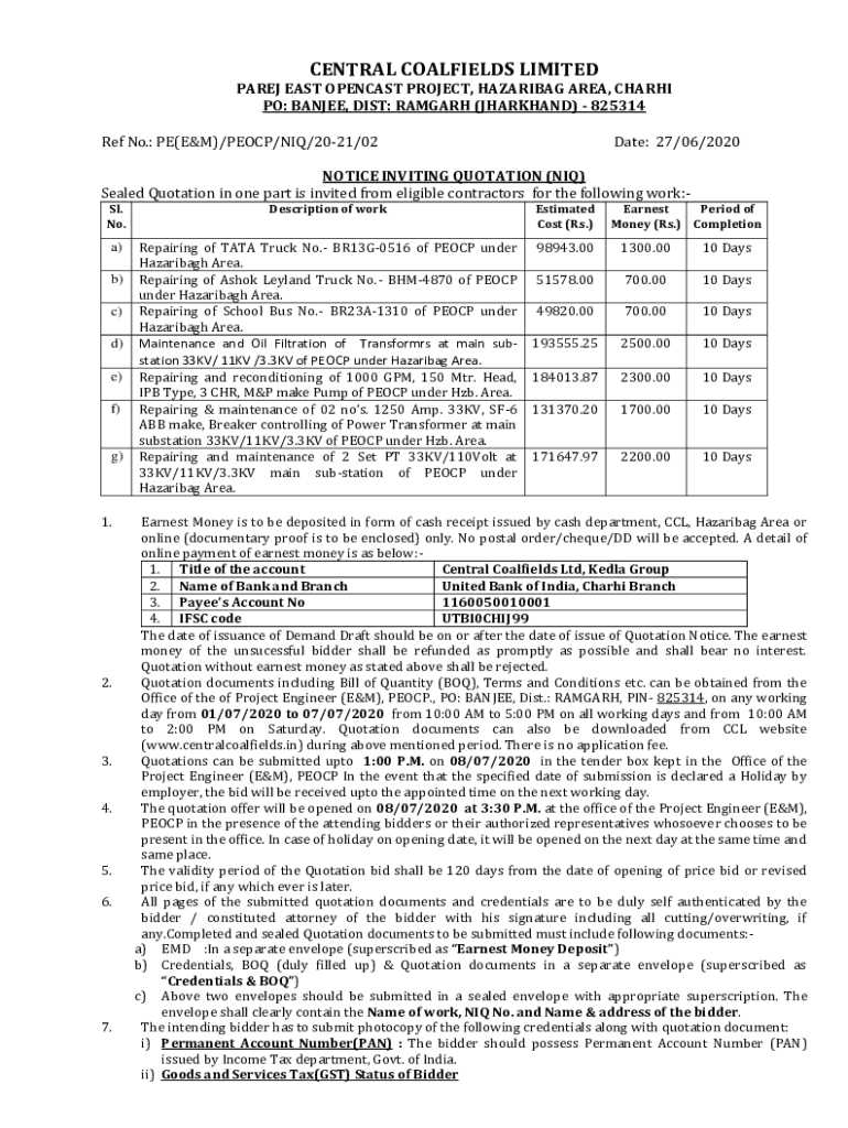 Ref No.: PE(E&M)/PE OCP/IQ/2021/02Date: 27/06/2020NOTICE INVITING QUOTATION