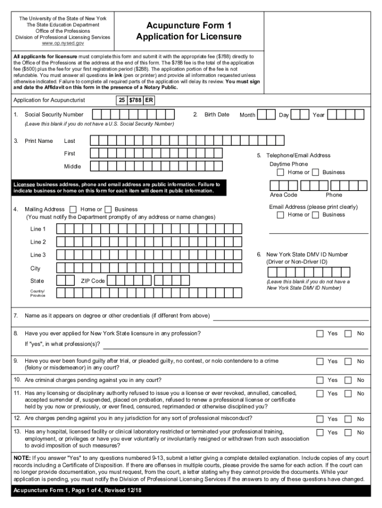 The University of the State of New York The State Education Department Office of the Professions Division of Professional Licensing Services www.op.nysed.govAcupuncture Form 1 Application for Licensure