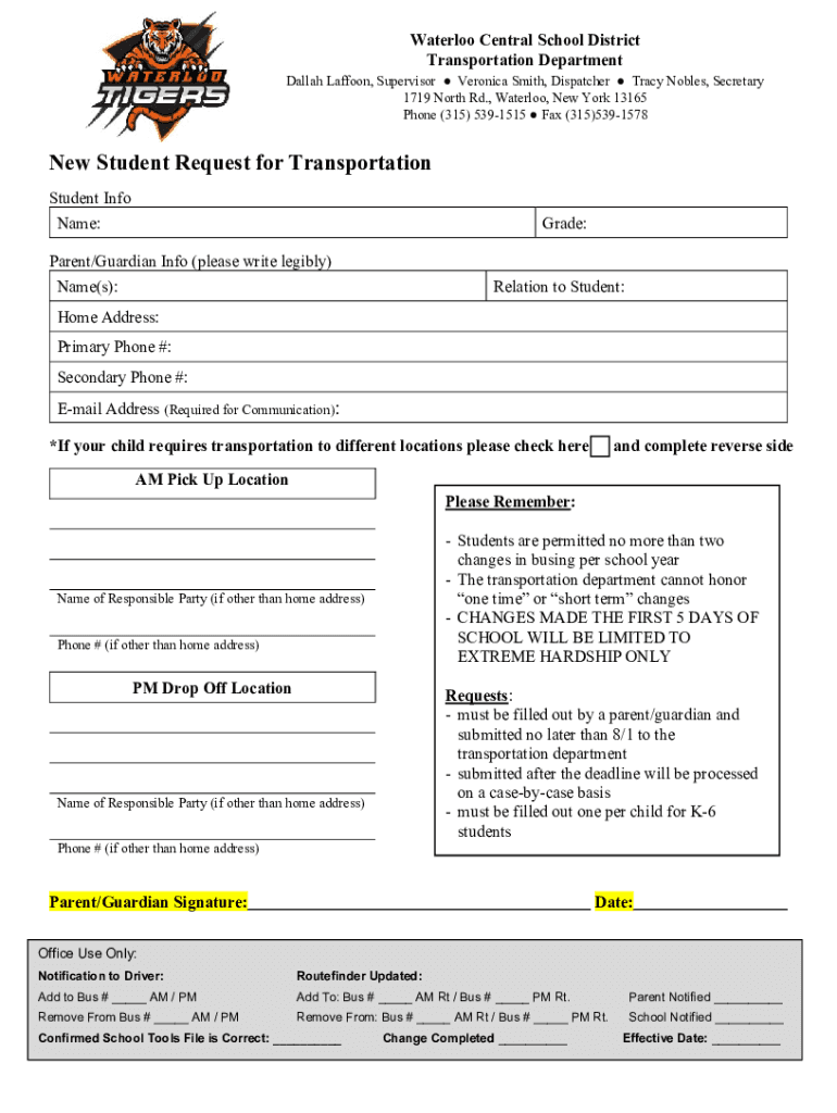 Get the free New Student Request for Transportation