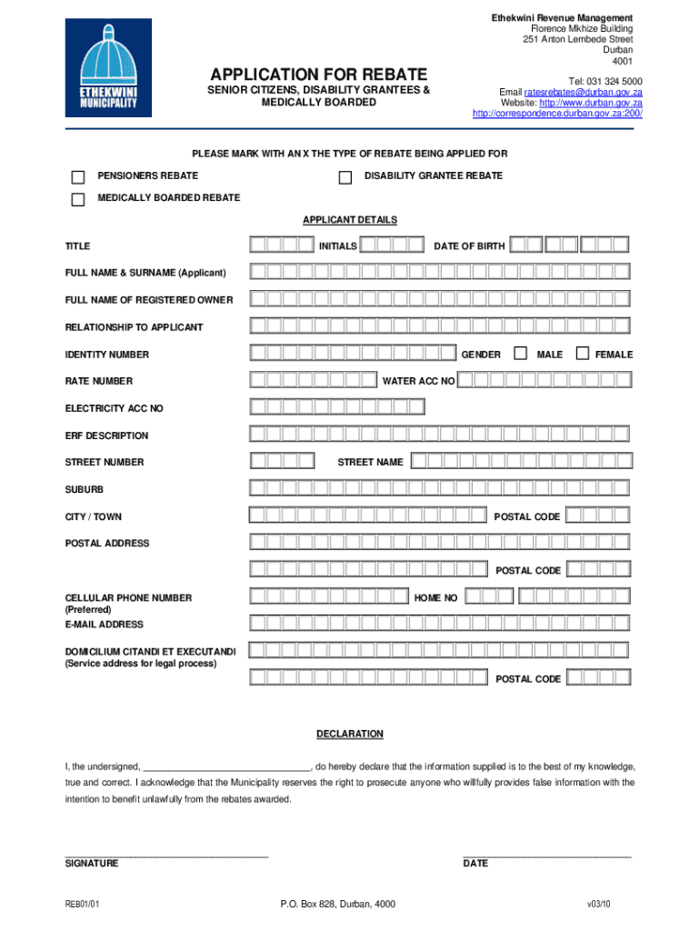 Citizens must report their personal information, property details, and income information on ratesrebates durban gov za.
