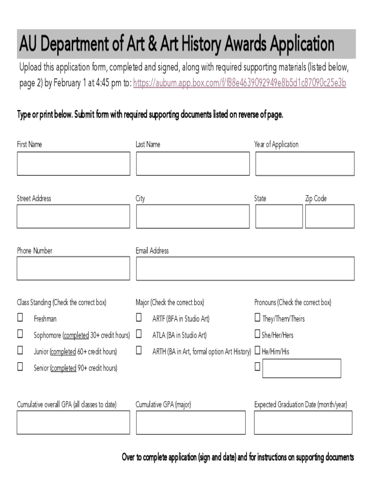 Get the free AU Department of Art & Art History Awards Application - cla auburn