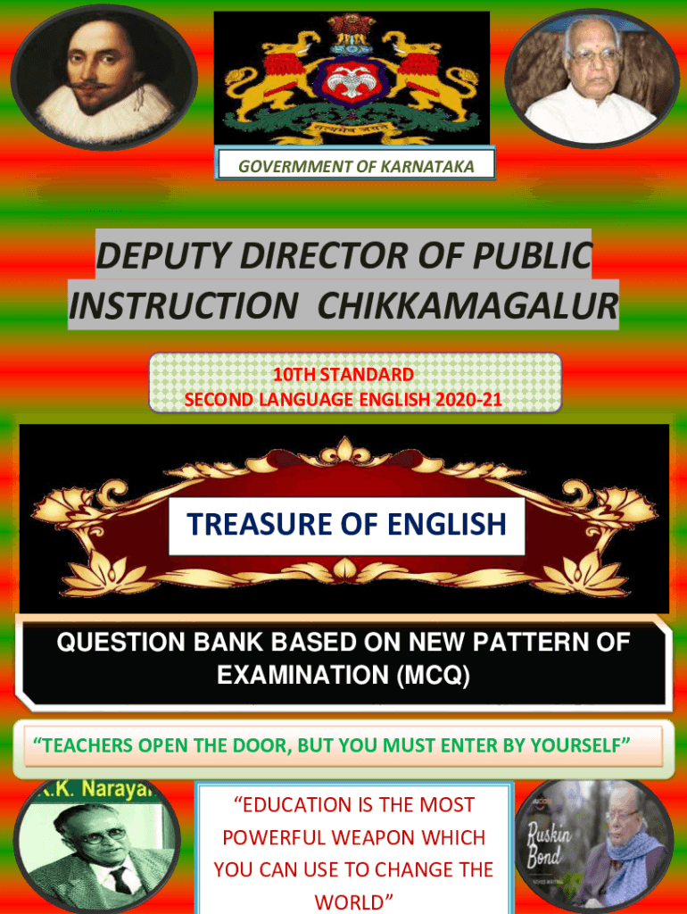 GOVERNMENT OF KARNATAKADEPUTY DIRECTOR OF PUBLIC INSTRUCTION CHIKKAMAGALUR 10TH STANDARD SECOND LANGUAGE ENGLISH 202021 JJJDTREASURE OF ENGLISHQUESTION BANK BASED ON NEW PATTERN OF EXAMINATION (MCQ)