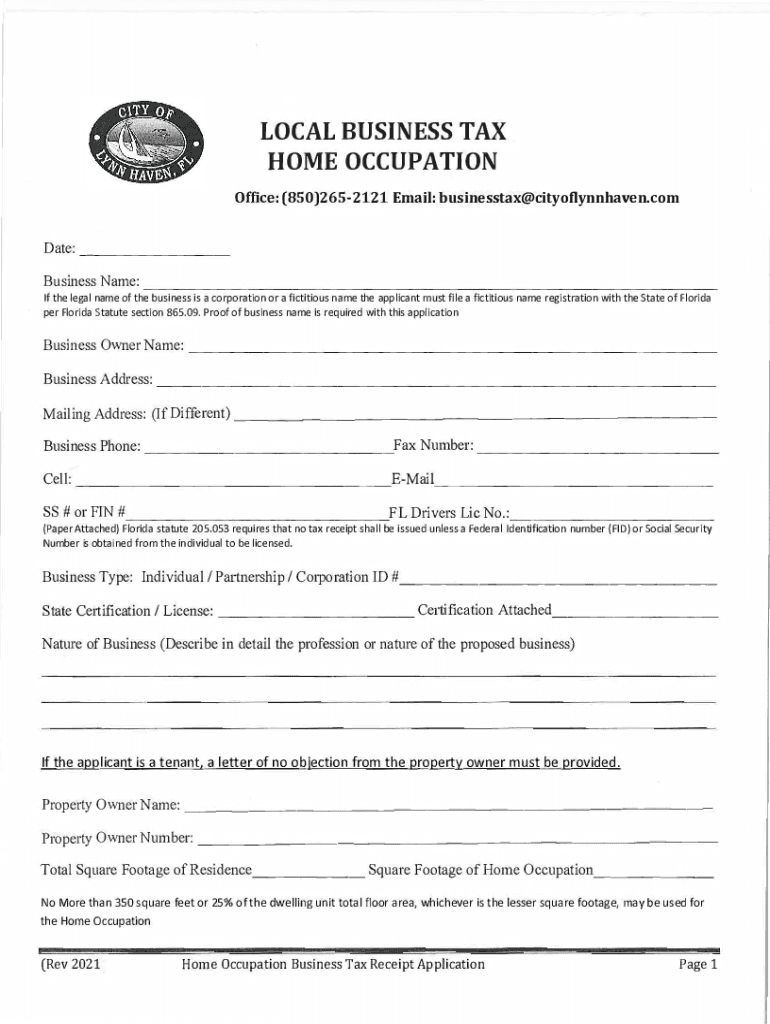 Home Occupation Application Local Business Taxi you are a new business planning to operate in the City of Lynn Haven, you must file an application for City of Lynn Haven Local Business Tax before