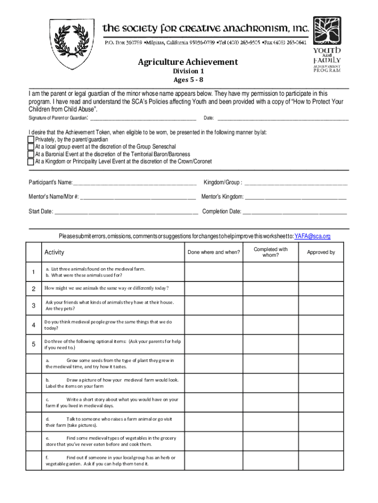 Agriculture Achievement Division 1 Ages 5 8___I am the parent or legal guardian of the minor whose name appears below. They have my permission to participate in this program. I have read and understand