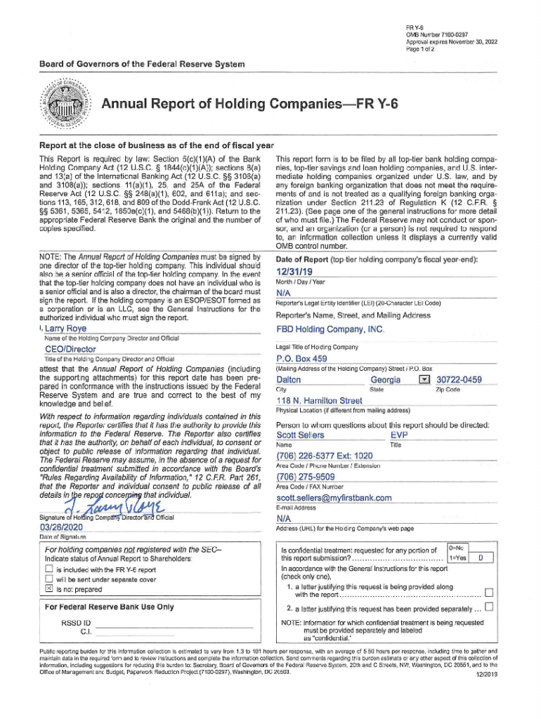 FRY6 0 MB Number 71000297 Approval expires November 30, 2022-Page 1 of 2Board of Governors of the Federal Reserve Systematical Report of Holding Companies FR Y6 Report at the close of business as