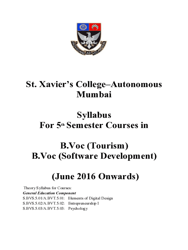 Get the free Syllabus for B. Voc. in Software Development
