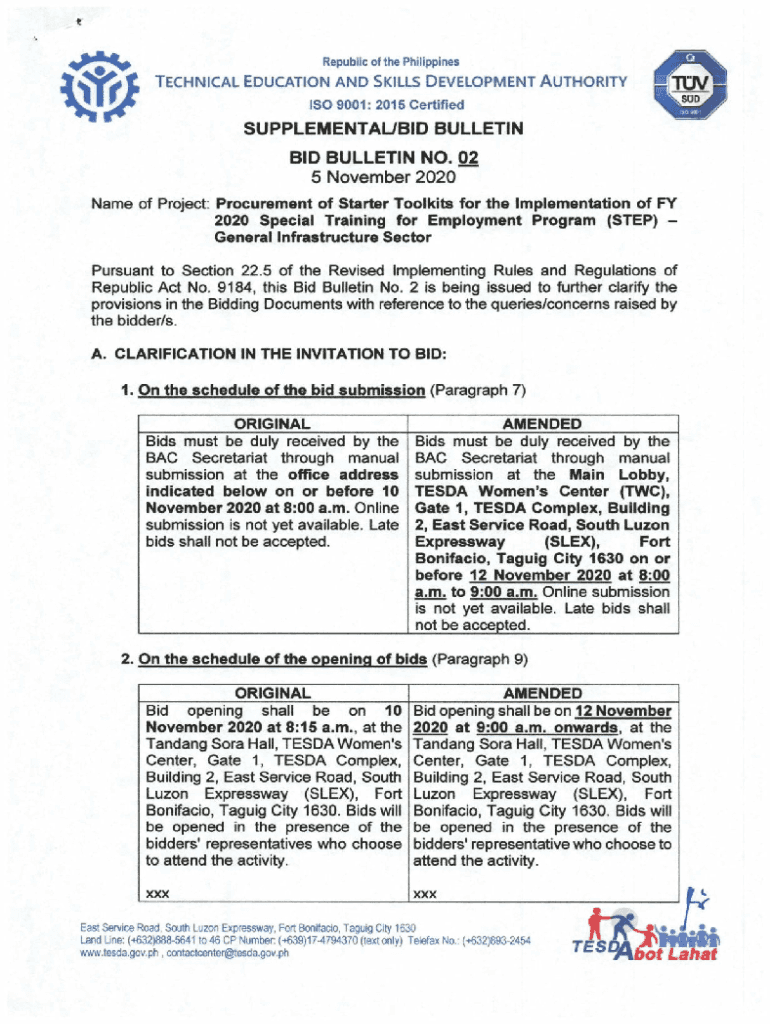 ISO 9001: 2015 CertifiedSUPPLEMENTAL/BID BULLETIN NO. 02