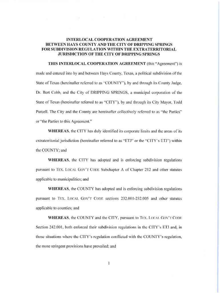 Get the free interlocal cooperation agreement between hays county and ...