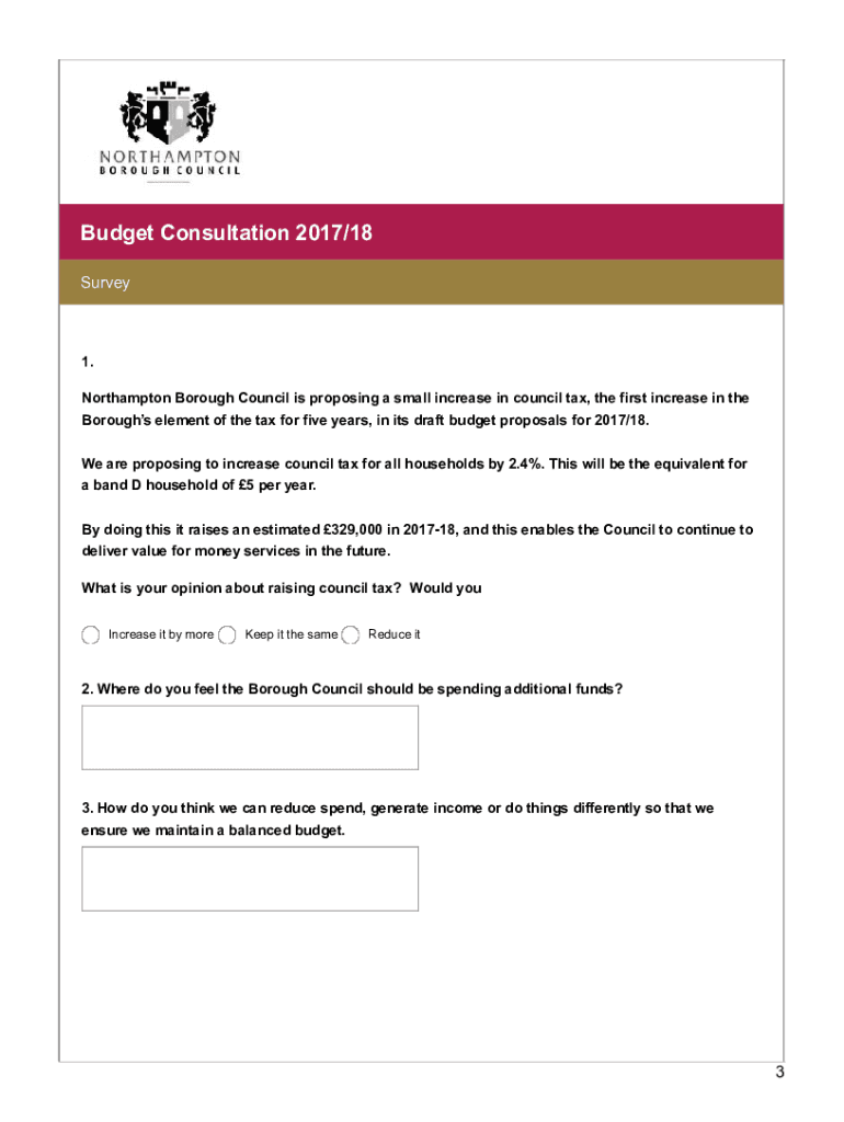 Budget Consultation 2017/18 We want your views Borough Councils budget proposals for the next financial year are set against a background of ongoing work to put the Council on a firm financial footing