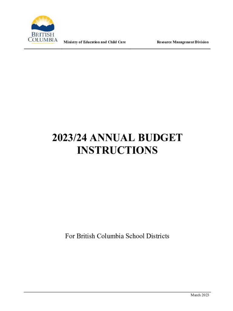 Instructions British Columbia School Districts March 2023MINISTRY OF EDUCATION AND CHILD CHARITABLE OF CONTENTS