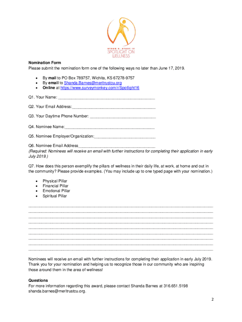 Get the free Nominations open for Byron G. Stout IV Spotlight on Wellness Award
