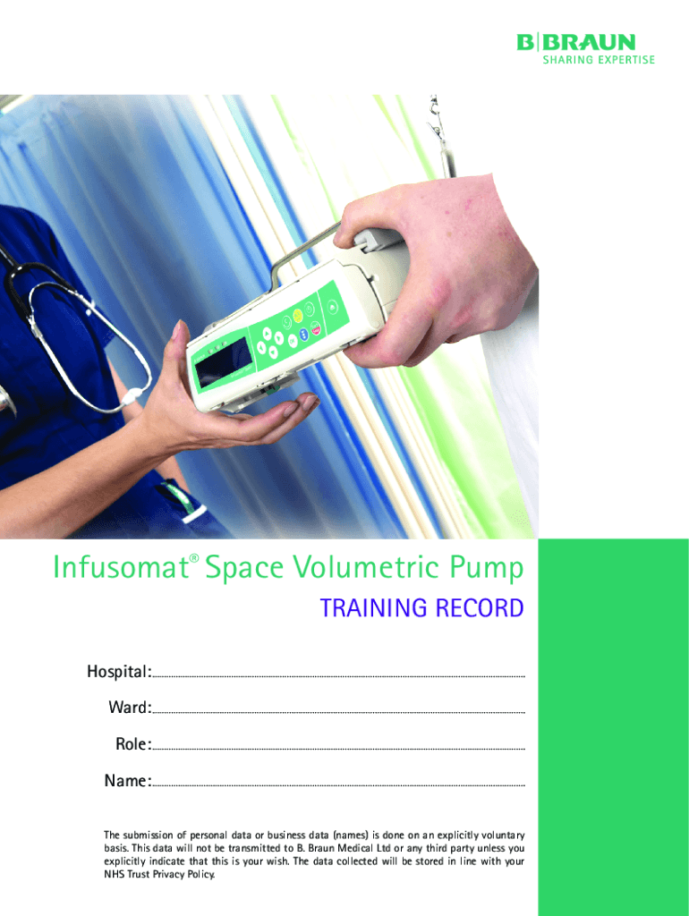 Infusomat Space Volumetric Pump TRAINING RECORD Hospital: Ward: Role: Name: The submission of personal data or business data (names) is done on an explicitly voluntary basis. This data will not be