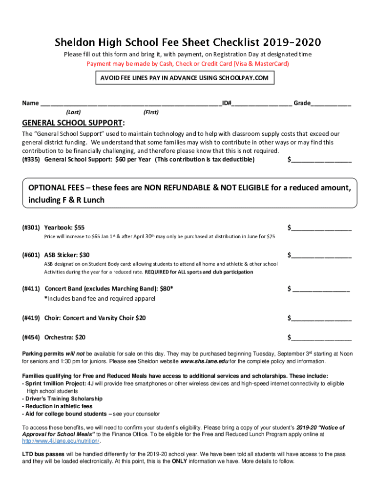 Please fill out this form and bring it, with payment, on Registration Day at designated time Payment may be made by Cash, Check or Credit Card (Visa & MasterCard) AVOID FEE LINES PAY IN ADVANCE USING