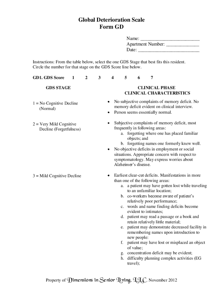 Get the free Global Deterioration Scale - Dimensions In Senior Living