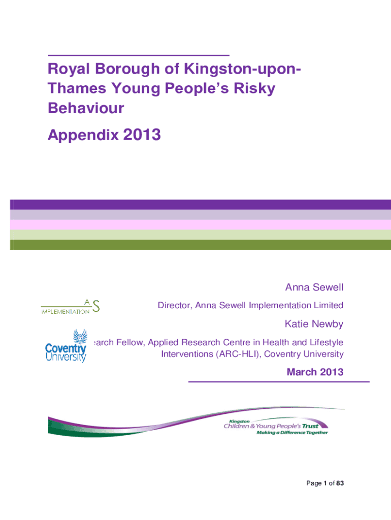 Royal Borough of KingstonuponThames Young Peoples Risky Behavior Appendix 2013Anna Sewell Director, Anna Sewell Implementation Limited Katie Newly Research Fellow, Applied Research Center in Health