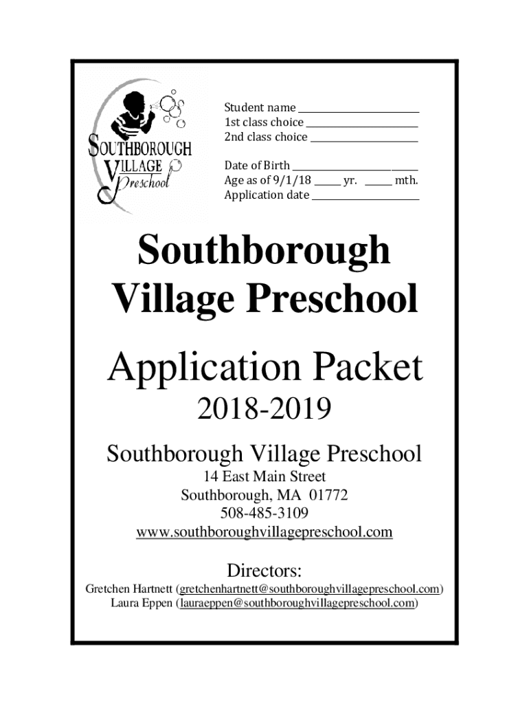 Get the free Southborough Village Preschool Application Packet