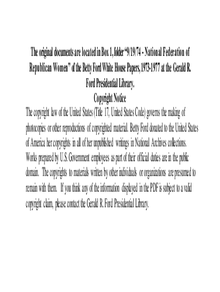 The original documents are located in Box 1, folder 9/19/74 National Federation of Republican Women of the Betty Ford White House Papers, 19731977 at the Gerald R. Ford Presidential Library. Copyright