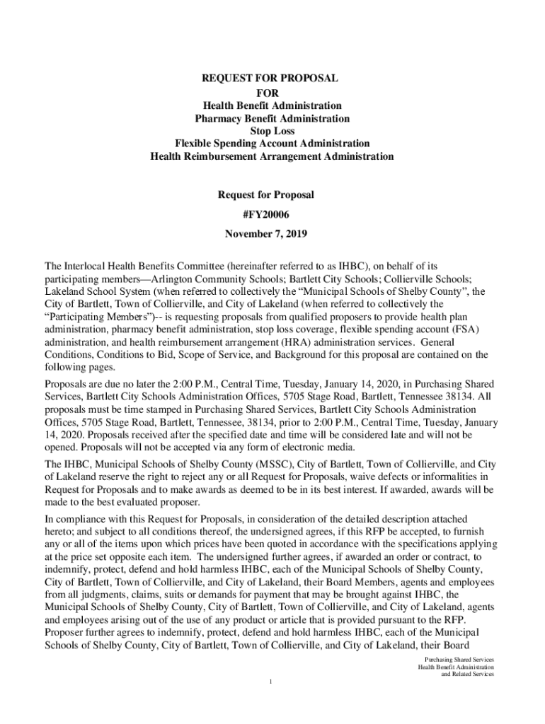 Get the free REQUEST FOR PROPOSAL FOR Health Benefit ...