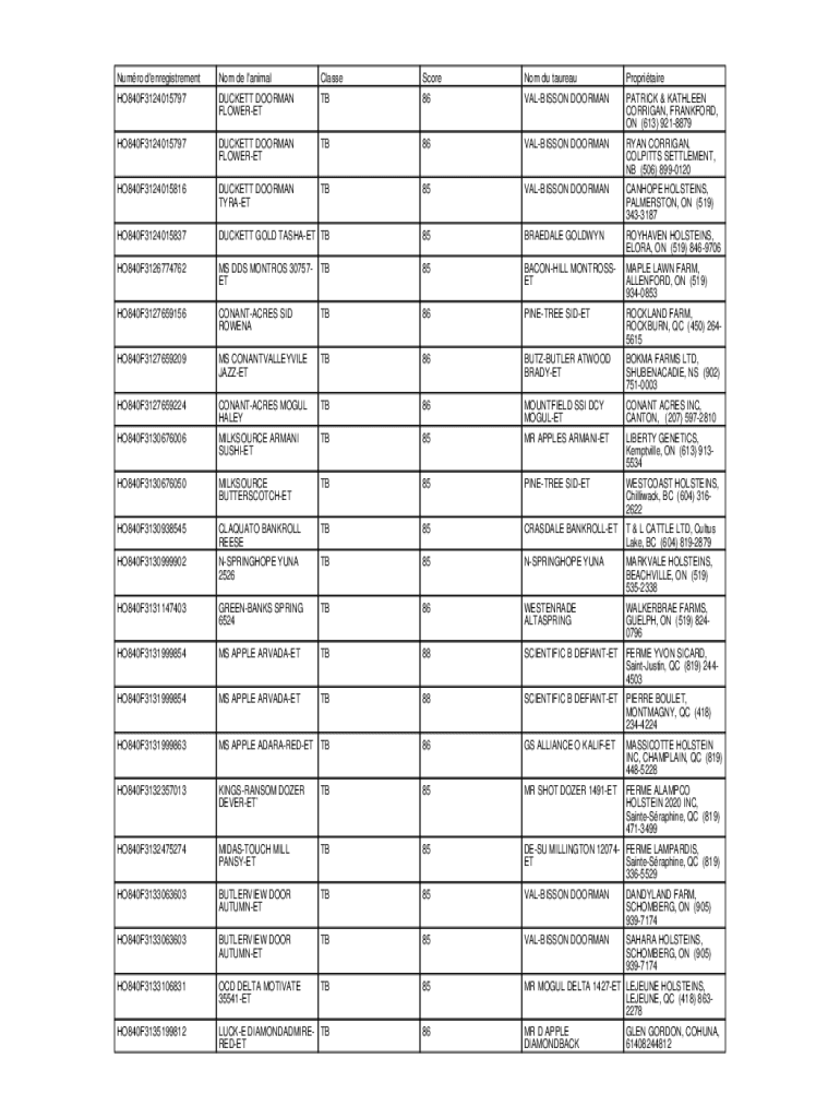 Humor d\'enregistrementNom de l\'animalClasseScoreNom Du taureauPropritaireHO840F3124015797DUCKETT DOORMAN