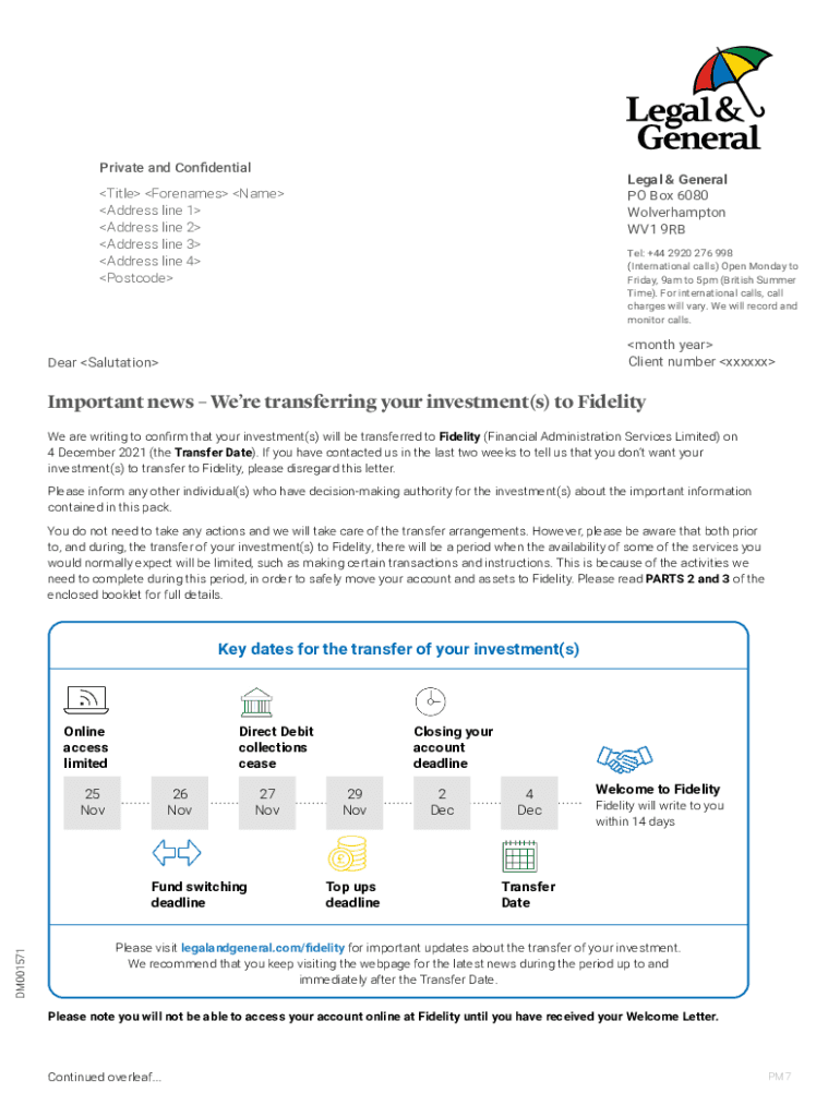 Private and ConfidentialLegal & General PO Box 6080 Wolverhampton WV1 9RBTitle Forenames Name Address line 1 Address line 2 Address line 3 Address line 4 Postcode: +44 2920 276 998 (International