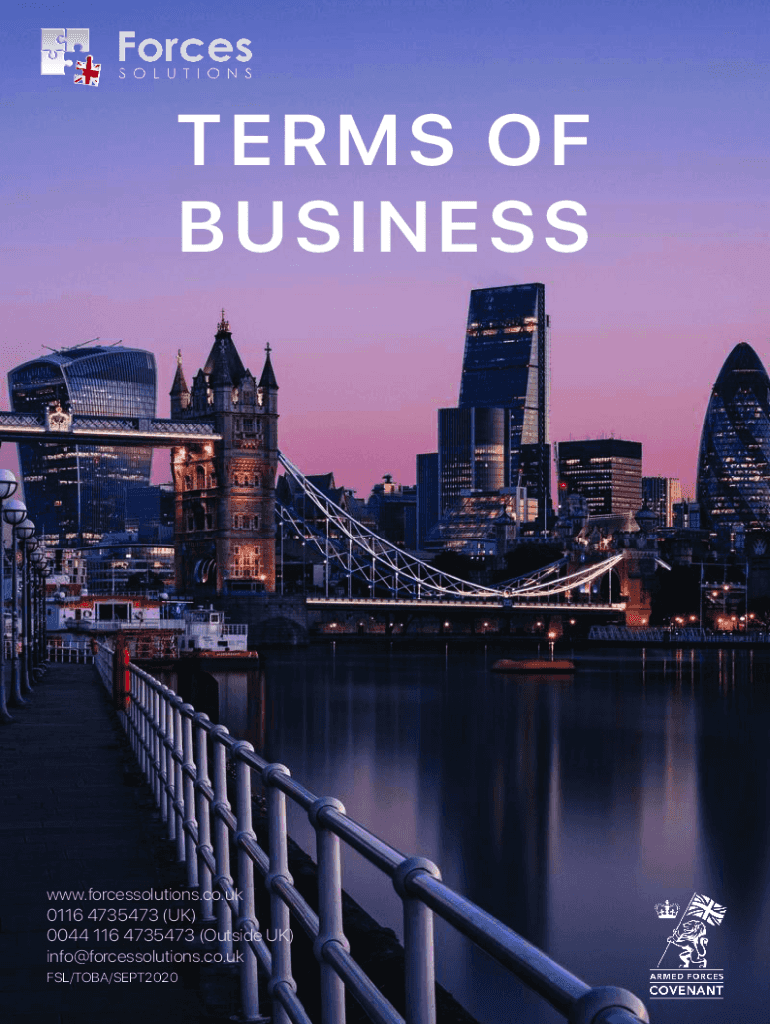 TE RMS O F BU SINE SSW.forces solutions.co.UK 0116 4735473 (UK) 0044 116 4735473 (Outside UK) info@forcessolutions.co.uk SL/TOBY/SEPT20201Please read this document carefully. It sets out the terms
