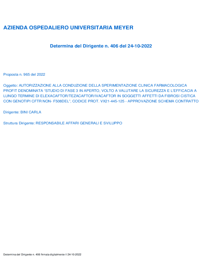 AGENDA OSPEDALIERO UNIVERSITARIA MEYERDetermina Del Diligence n. 406 Del 24102022Proposta n. 965 Del 2022