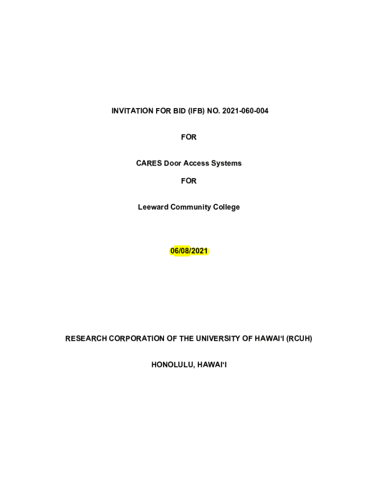 INVITATION FOR BID (IF) NO. 2021060004 FOR CARES Door Access Systems FOR Leeward Community College06/08/2021RESEARCH CORPORATION OF THE UNIVERSITY OF HAWAII (RCH) HONOLULU, HABITABLE OF CONTENTS IF