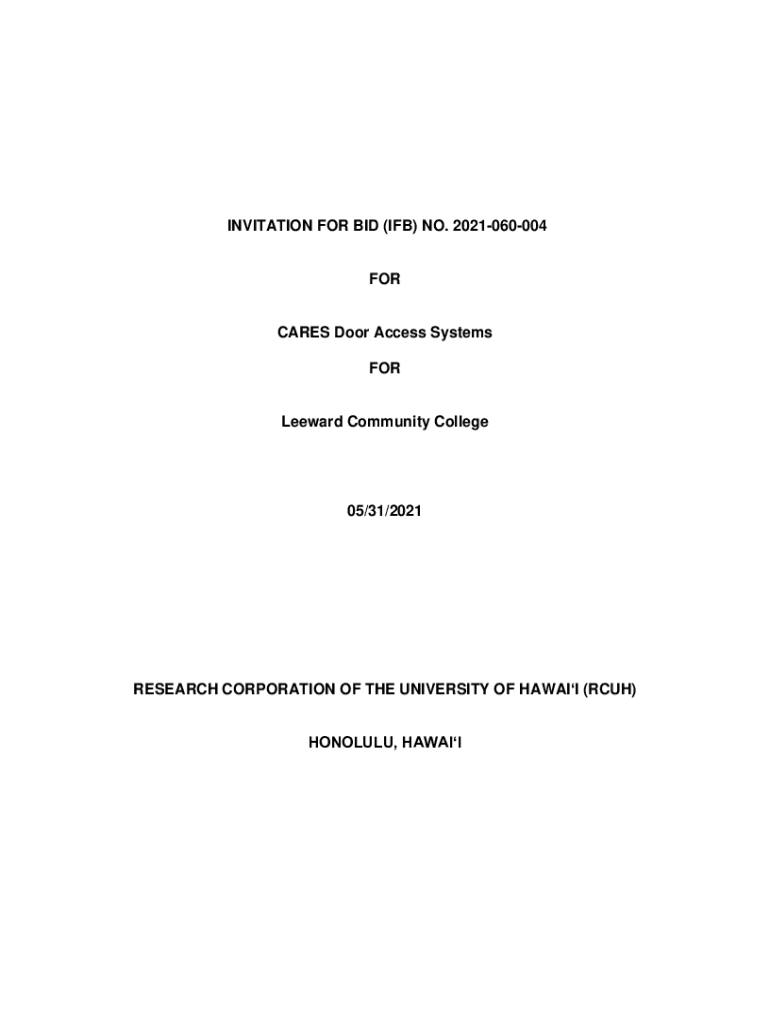 INVITATION FOR BID (IF) NO. 2021060004FORCARES Door Access Systems FOR Leeward Community College05/31/2021RESEARCH CORPORATION OF THE UNIVERSITY OF HAWAII (RCH) HONOLULU, HABITABLE OF CONTENTS IF